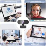 ćFull HD 1080P Webcam for PCćHigh quality with exquisite appearance. High definition with 1080P video call. Webcam with microphone comes with a full HD glass lens, giving you stunning clarity and detail. The glass lens of web cam captures sharp images to provide consistent high-definition quality. Automatic low light correction makes you see clearly even in dim or poorly backlight settings. Face enhancement technology automatically optimizes the image so you look more beautiful in the video