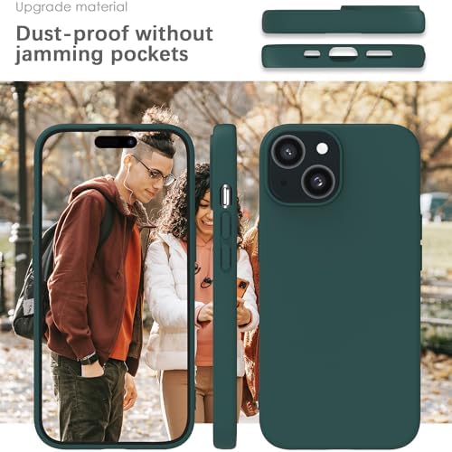 YATWIN Silicone Case for iPhone 14, Soft-Touch, Shockproof, DustProof, Antiskid Full Body Armour Phone Cover for Apple iPhone 14 - Dark Green