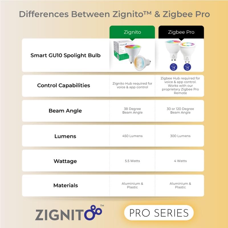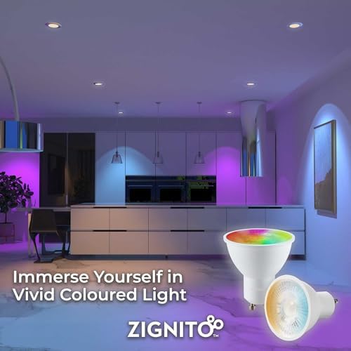 Home Home Tech ZIGNITO GU10 Smart Bulb, White & Colour LED, Works with, Alexa, Hey Google, S’Things (Hub Required) Zigbee GU10, Smart Spotlight, Up to 16 Million hue of Colours and Whites. (Pack of 4)